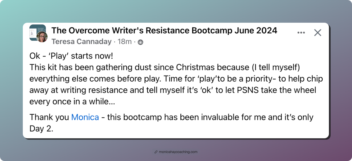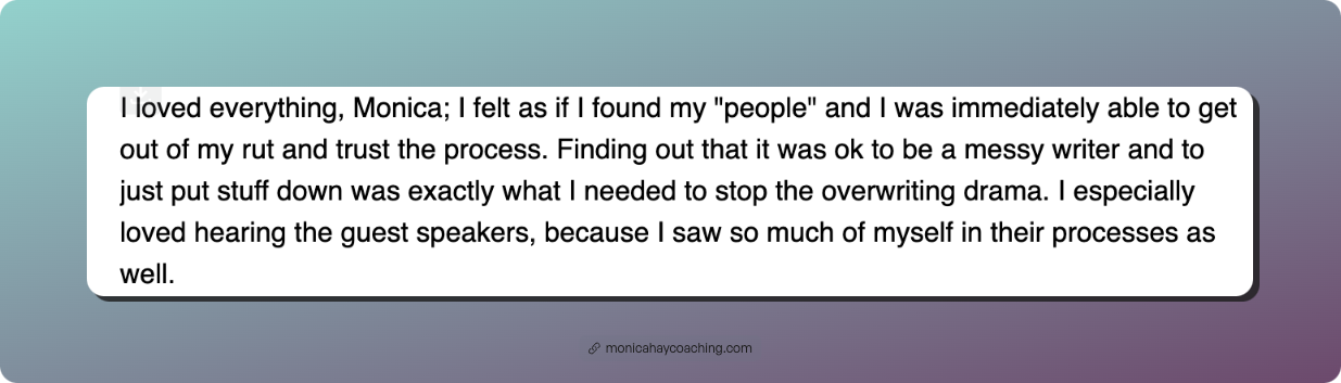 My clients have gone from avoiding writing for YEARS to finally finishing their books. Showing up, feeling joy and peace, and loving writing again.